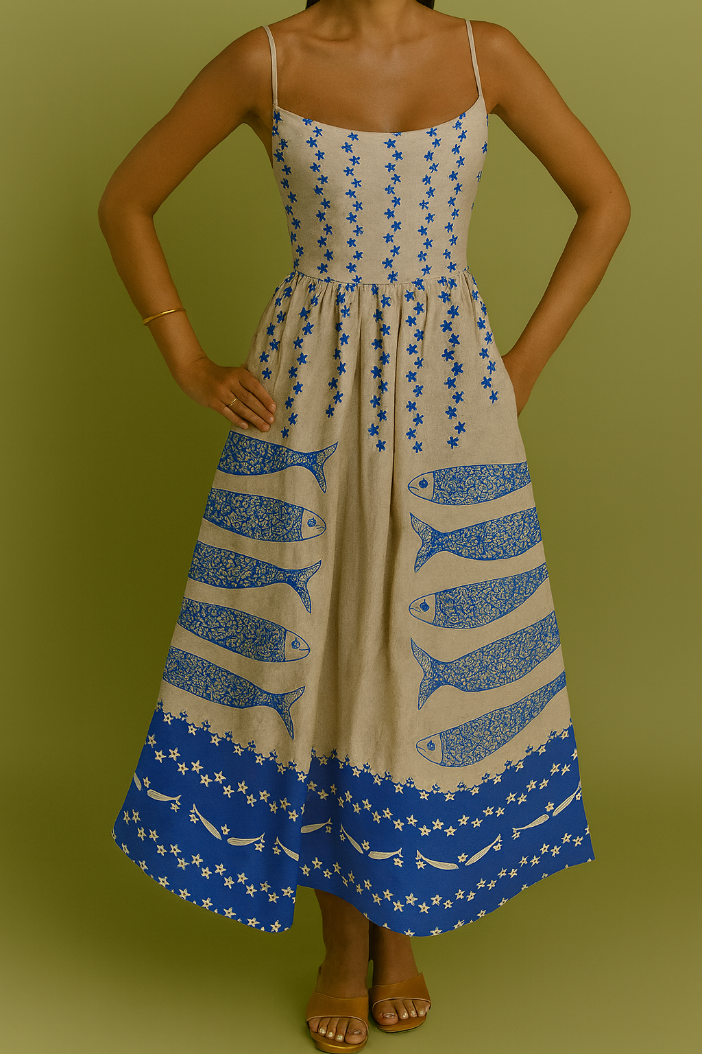 Vestido Tirantes estampado sardinas azules